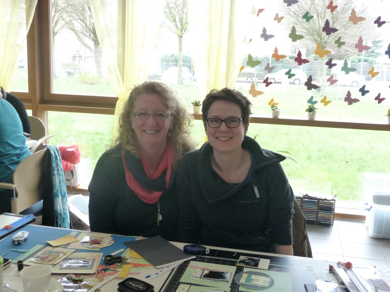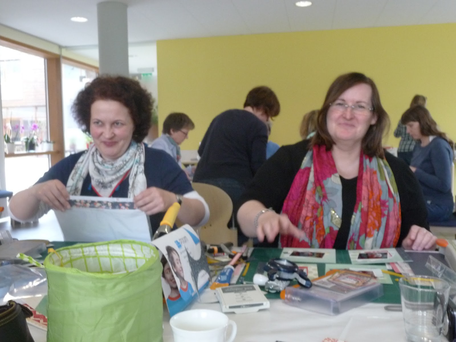 Meine sehr netten Tischnachbarinnen!Ganz oben im Bild ist Sarah,eine sehr talentierte Scrapperin,und ebenfalls SU-Demo,mit eigenem Blog.Nur ich Dussel habe natürlich nicht nach der Blogadresse gefragt.Also liebe Sarah,wenn du das hier lesen solltes,lass mir doch bitte deine Adresse zukommen!
