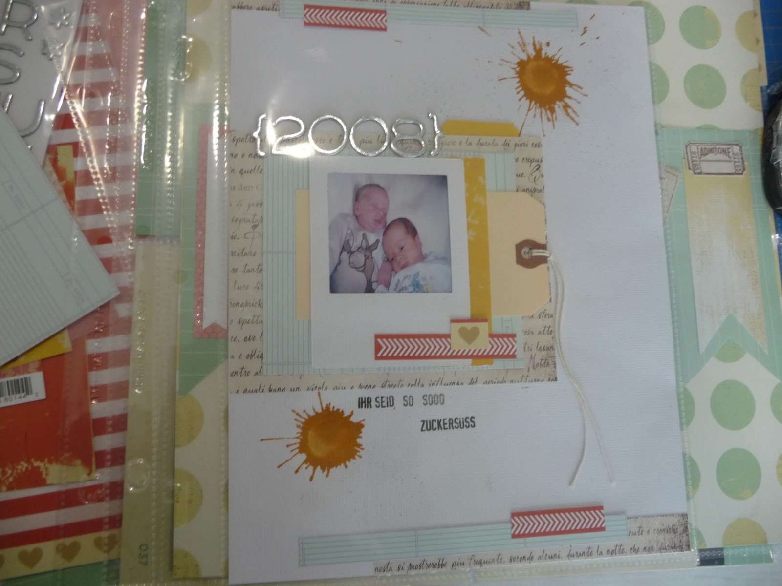 das Chaos auf meinem Platz.Hier beim 1. Layout.Wie ihr seht mit Babyfotos von meinen Zwillingen.
