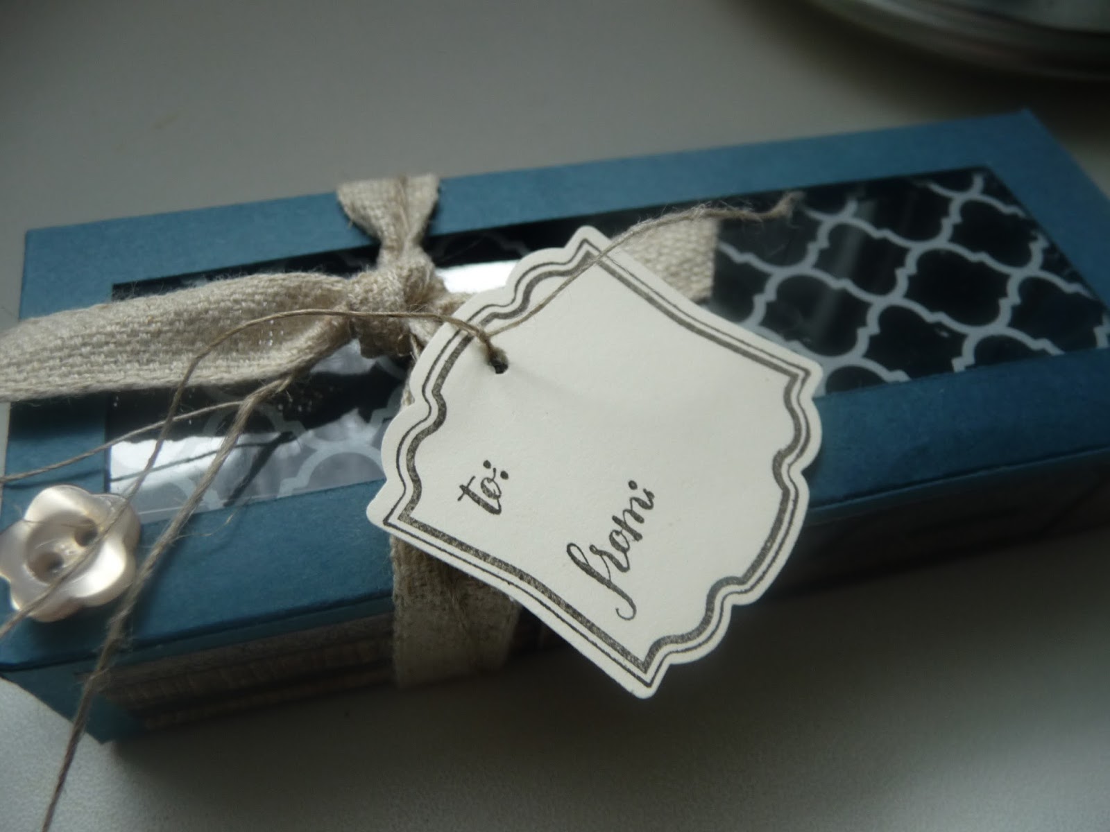 Bestehend aus einer Karte und einer kleinen Verpackung,in der man Gutscheine,kleine Geschenke oder Süßes packen kann.