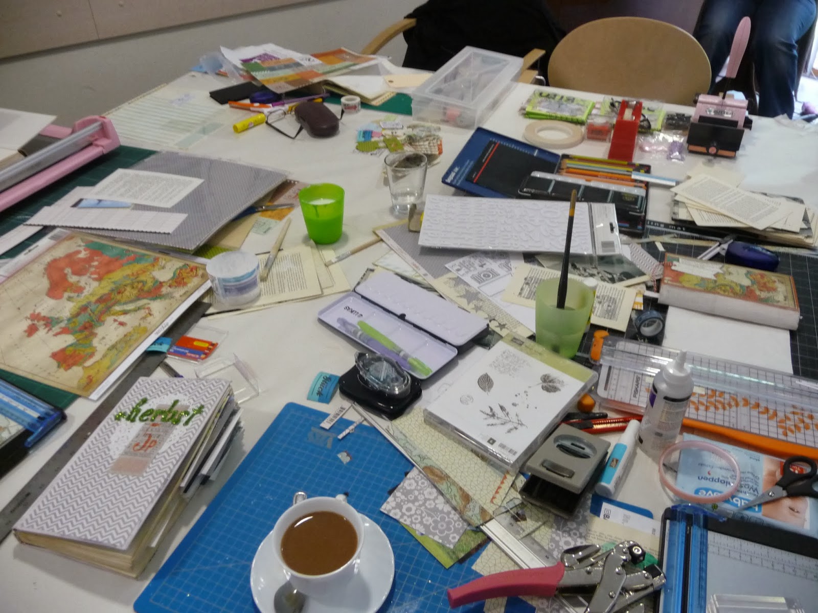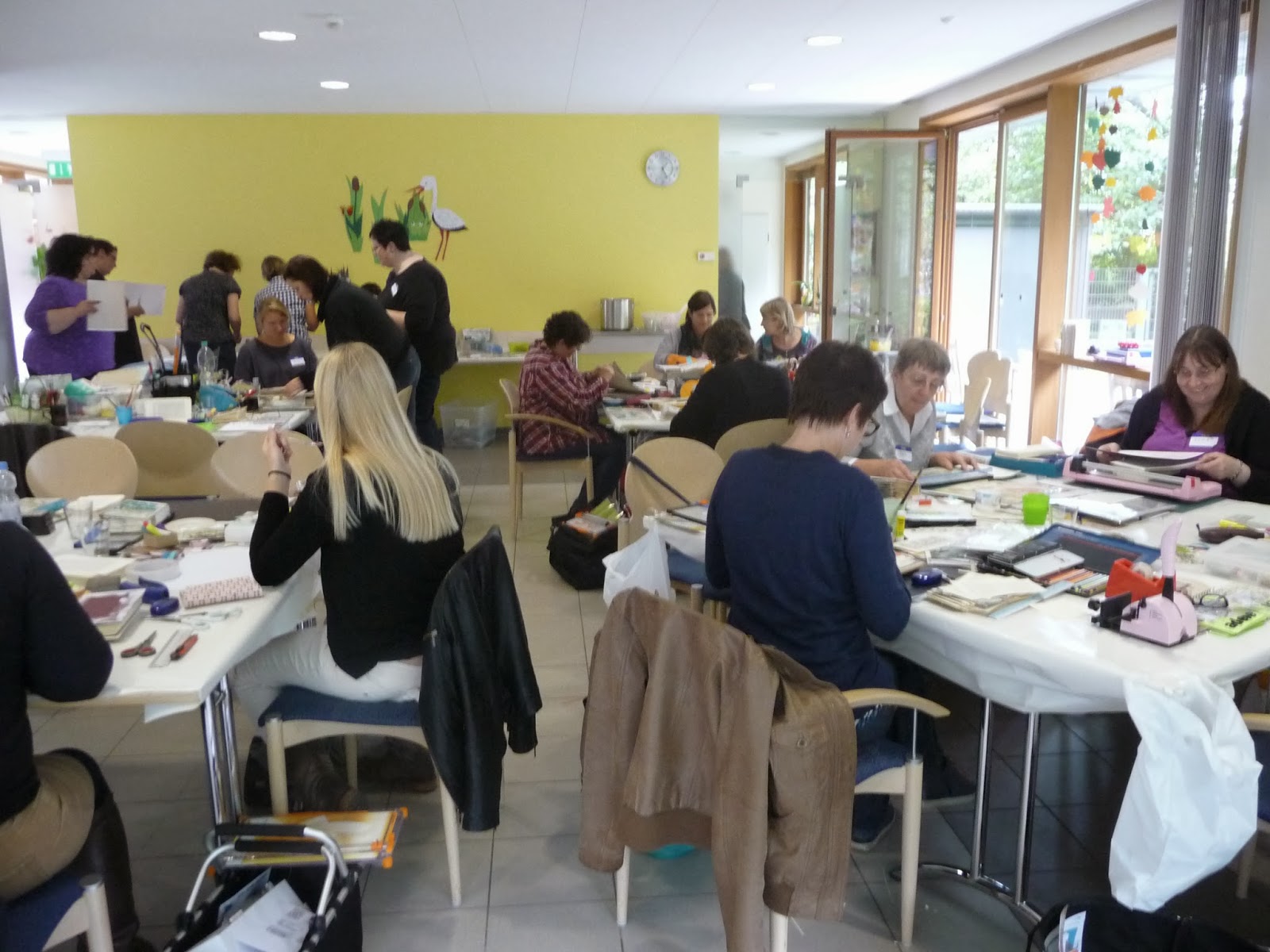 Heute war ich wieder in Erkrath.Babara gab einen tollen Workshop und wir haben aus einem alten Buch ein Minialbum gewerkelt,indem viele Fotos passen.