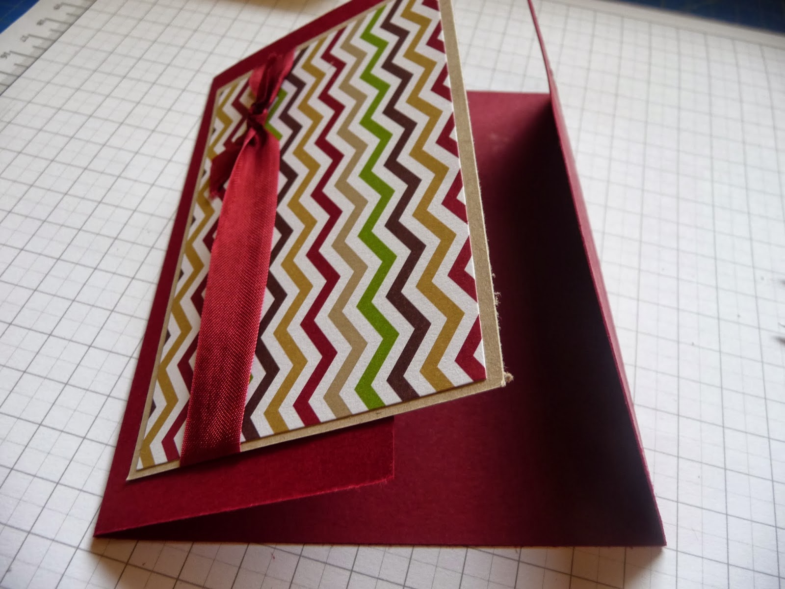 Diesen klebt ihr jetzt aud die rechte breitere Seite eurer Grundkarte.Wenn ihr ein Band anbringen möchtet,müßt ihr das natürlich vor dem Kleben machen.