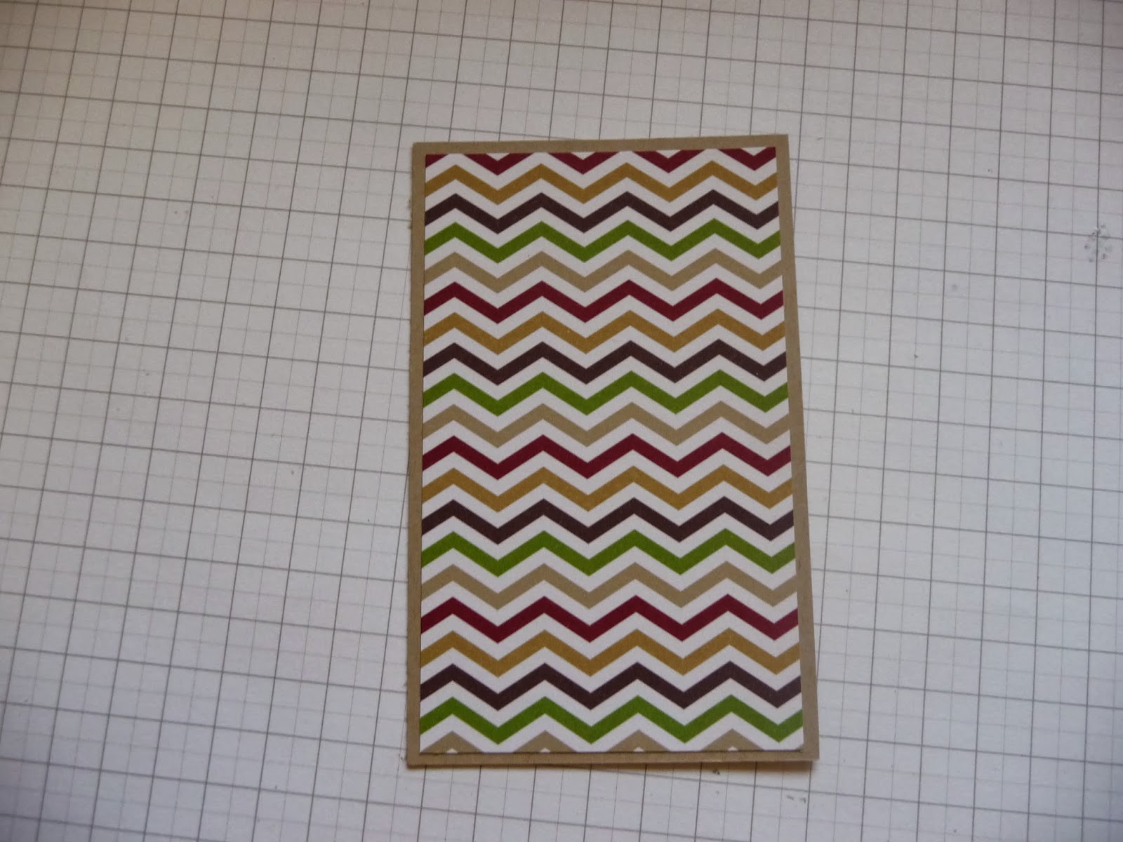 Dann schneidet ihr ein Stück Farbkarten,hier Savanne, in den Maßen 12cm x 7,5cm und ein Stück Designpapier,Stilmix, in 11,5cm x 7cm zu und klebt das Dp auf das Stüch FK.