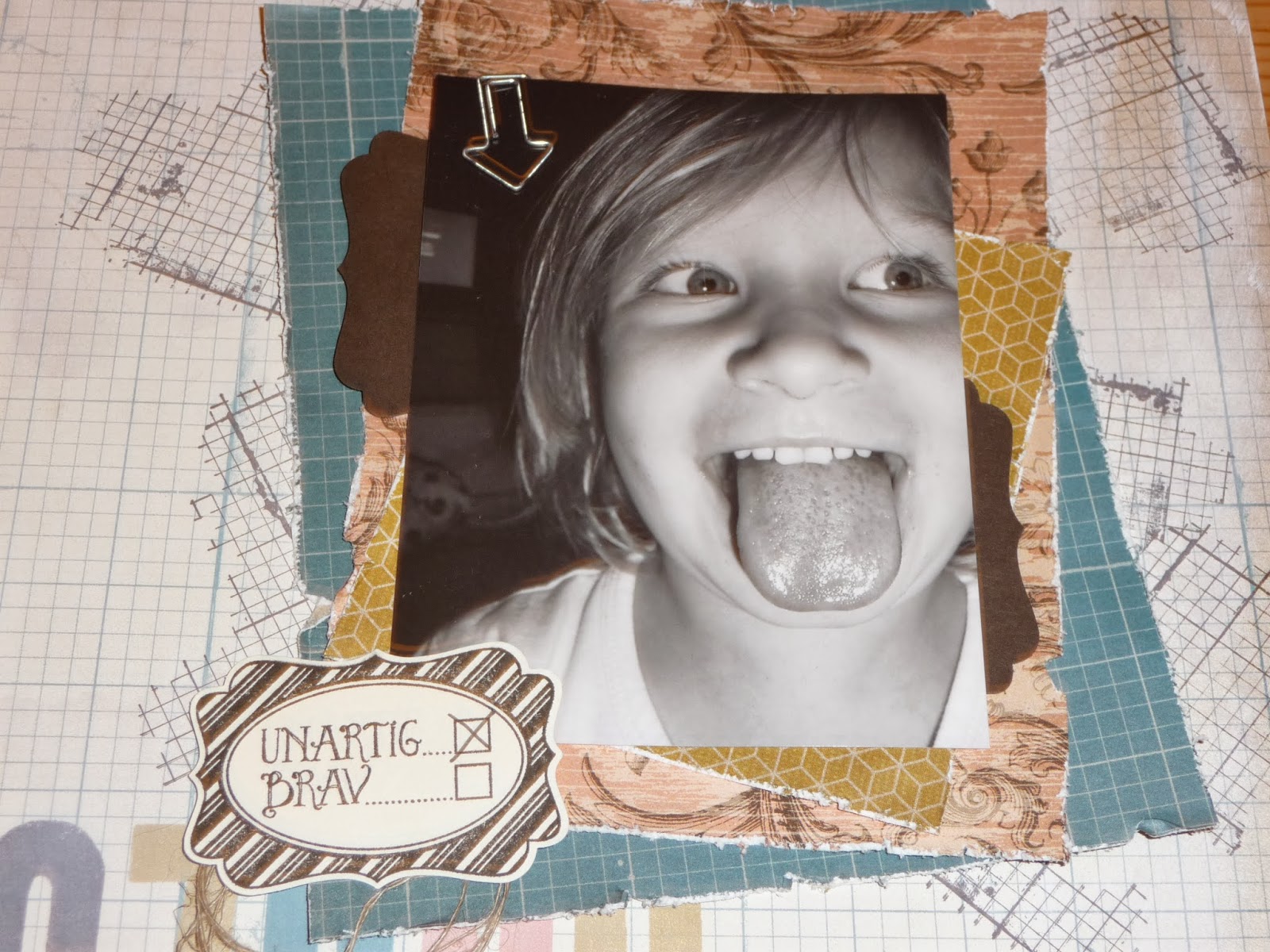 Hier nun das zweite Layout.Es zeigt meine”Große”,wie sie mir gerade im Spaß die Zunge rausstreckt.Ein echter Schnappschuss.Ich mag dieses Foto sehr!
