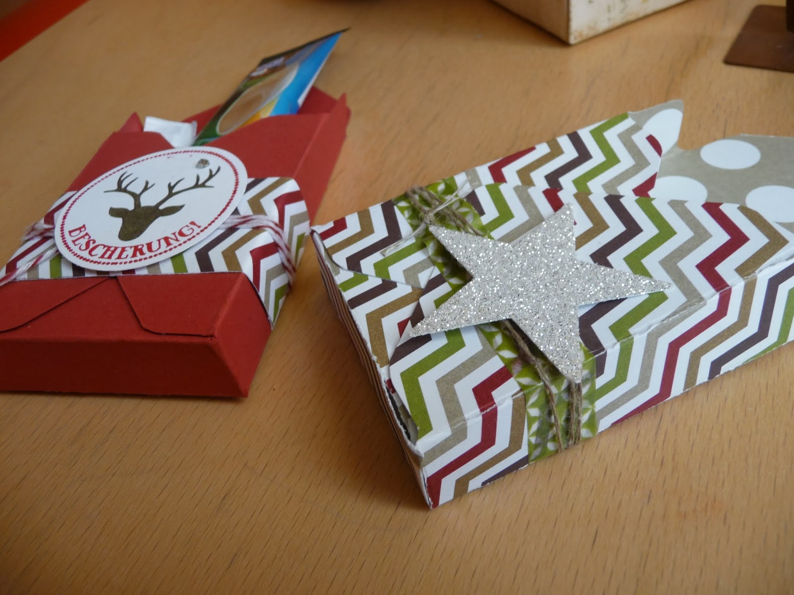 Coole Idee! Und ich Trottel habe die Boxen immer zugeklebt. 😉 So sieht das Ganze auch sehr nett aus. Ist der Inhalt aufgefuttert, lässt sich das leere Papier gut vor Muttern verstecken. Wäre ideal für meine Kids.