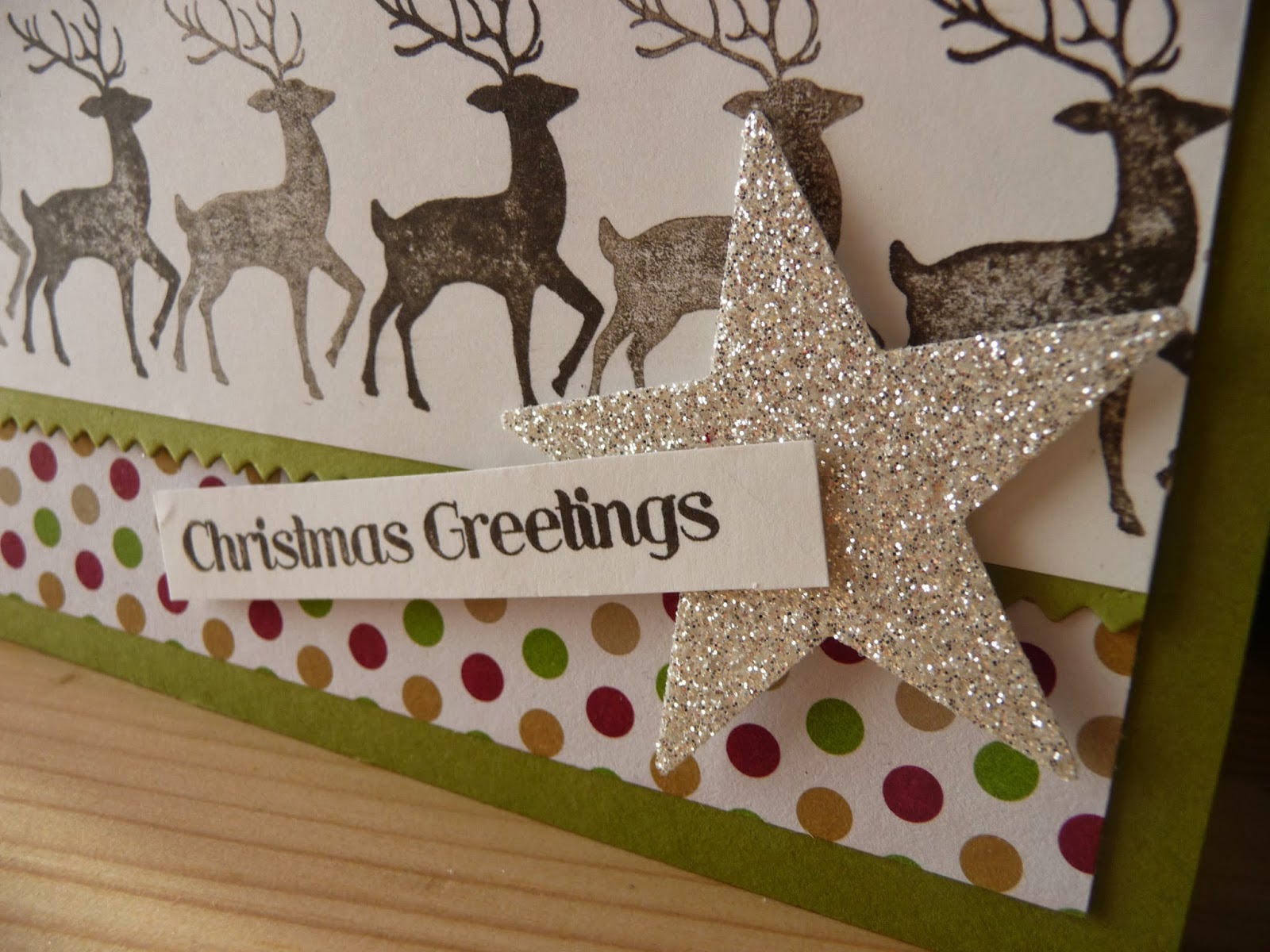 Nun gibt es eine Karte,die wir noch auf dem letzten Workshop gewerkelt haben.Natürlich mit geliebten Hirsch,aber in Klein!