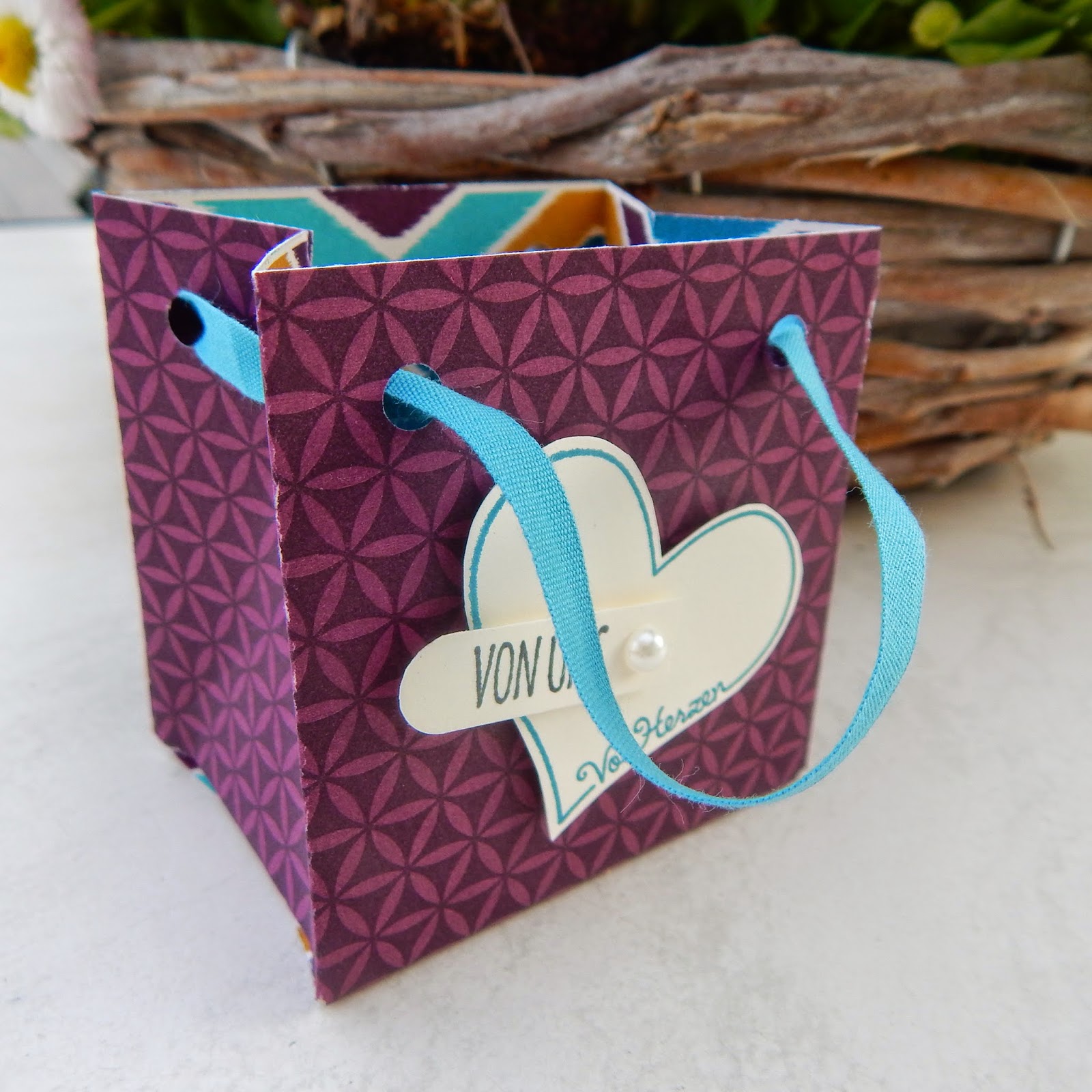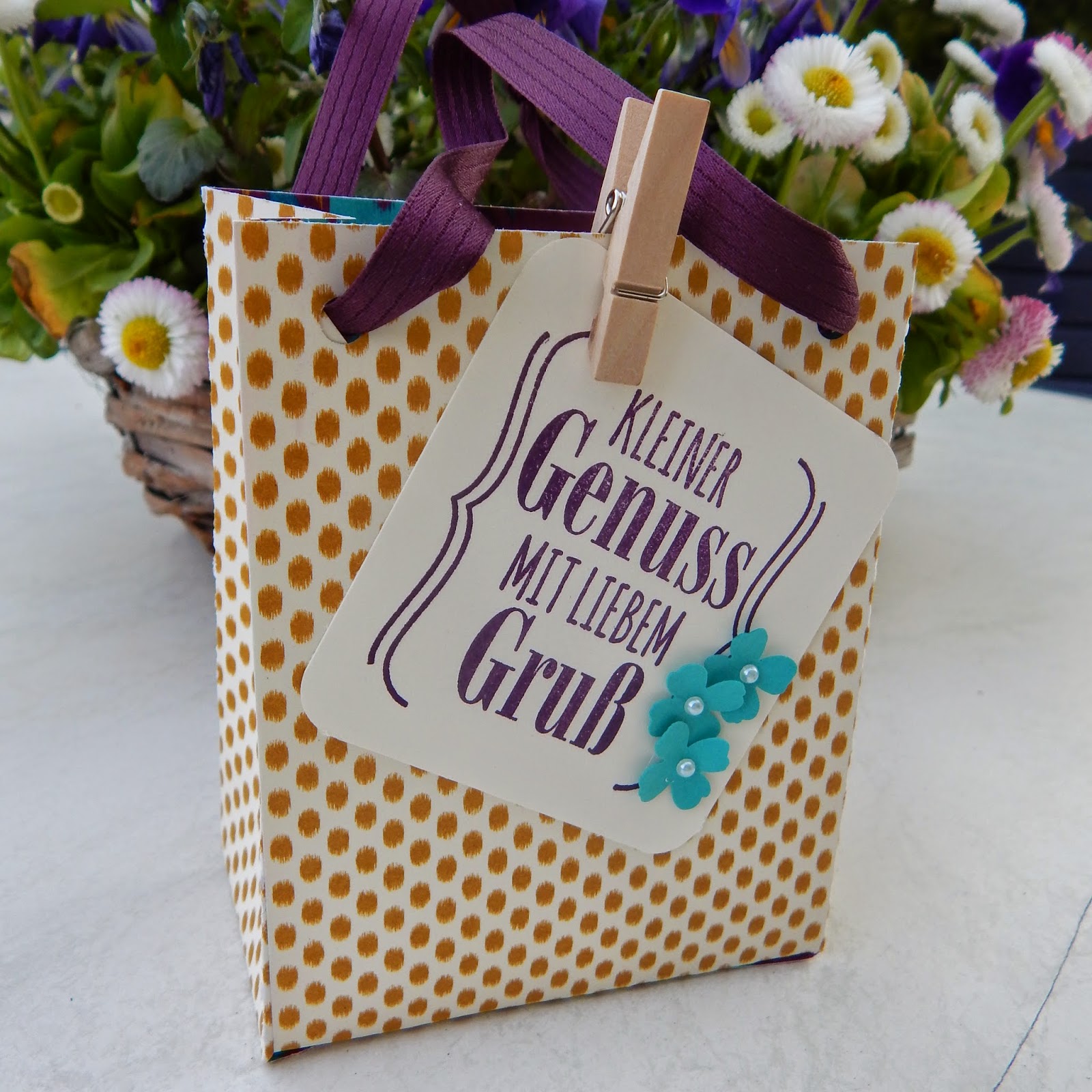 Mit neuem Designpapier und Stempelset kombiniert,kommen schöne Tüten dabei heraus.