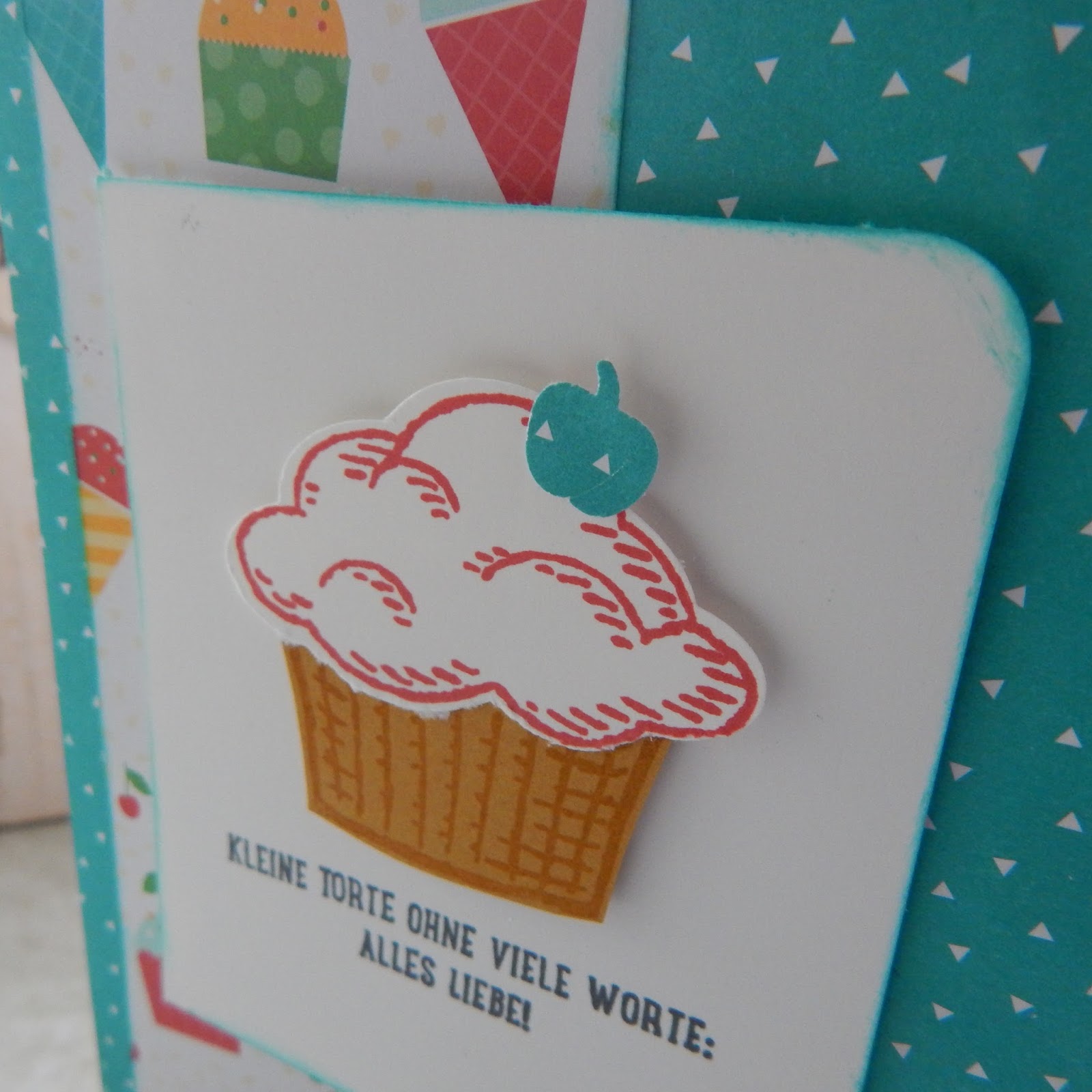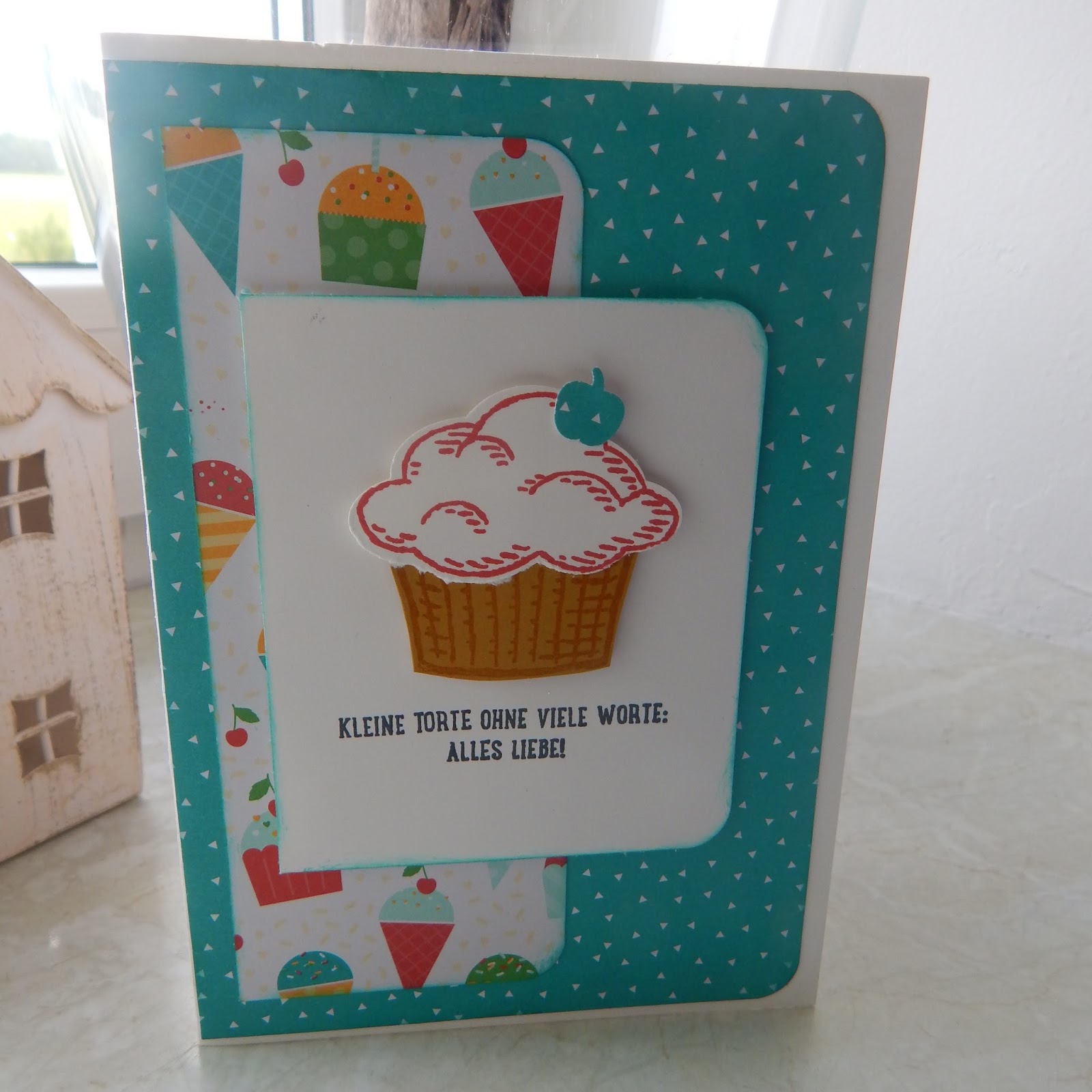 Dafür habe ich das Törtchenmotiv benutzt und schnell eine Geburtstagskarte gewerkelt.Davon kann Frau ja nicht genug haben.