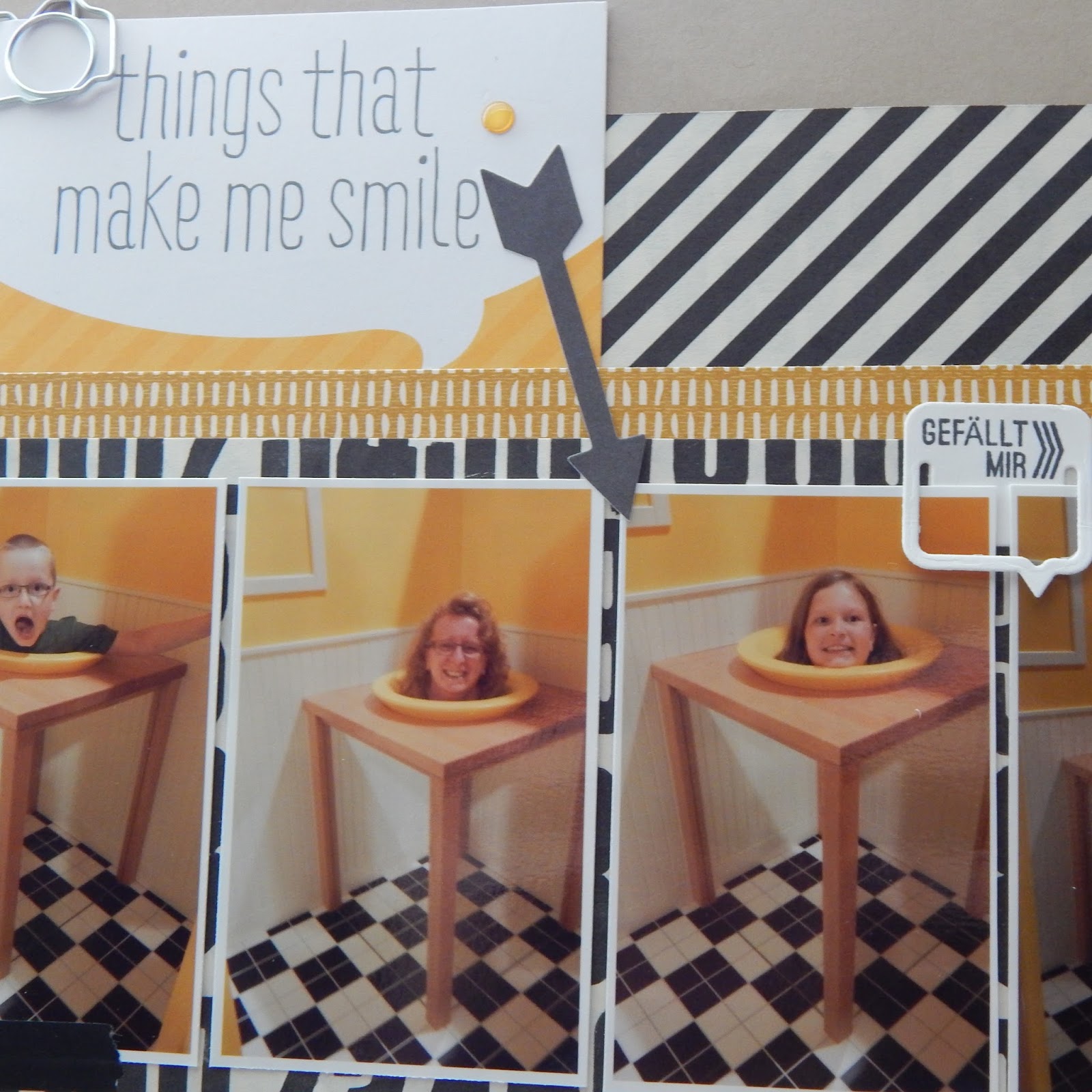 Ein paar witzige Fotos von unserem Galileobesuch auf Fehmarn habe ich in dieses Layout gepackt.Dabei ging es um Experimente mit optischer Täuschung.Wir hatten dabei soviel Spaß!Jeder mußte seinen Kof mal durch diesen Umbau stecken,als Belohnung gab es tolle witzige Fotos.