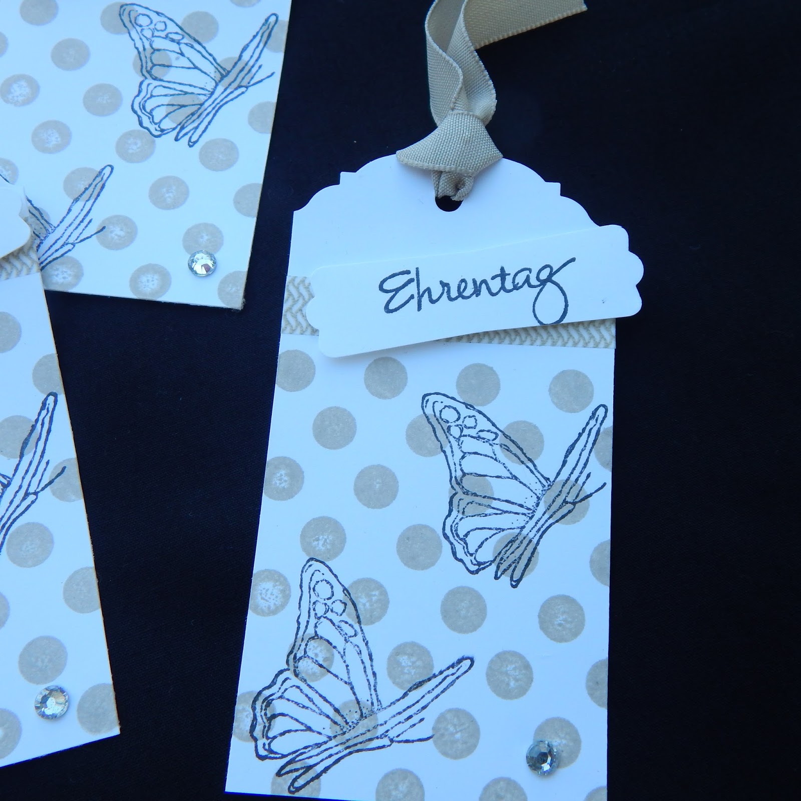 Ist der Schmetterling nicht toll?Und die gehen doch immer!Auch farblich hae ich mich diesmal zurückgehalten.Nur in Saharasand und Schwarz.