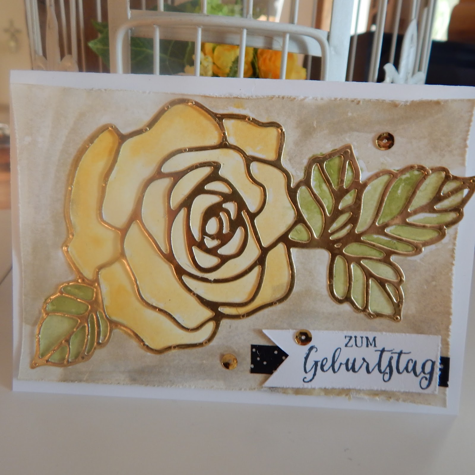 Die Thinlits (Metallstanze für die BigShot) Rosengarten aus dem Sommerkatalog hat es mich auf den ersten Blick begeistert.So feine Stanzteile, so viele Möglichkeiten. Bei meiner nächsten Karte habe ich mich wieder vom Katalog inspirieren lassen.