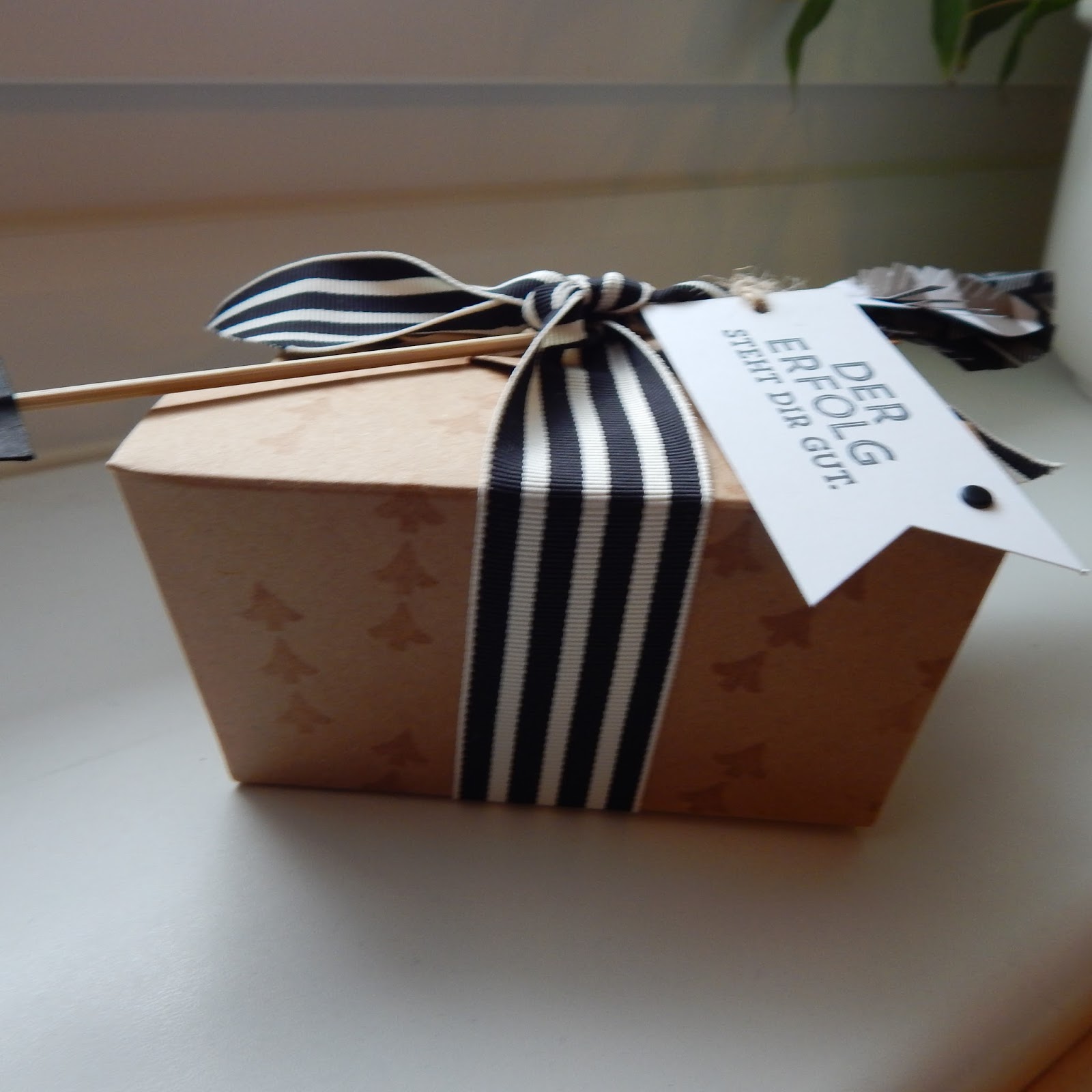 Den Karton gibt es schon fertig zu kaufen. Einfach ein wenig dekorieren und fertig ist die Geschenkschachtel.