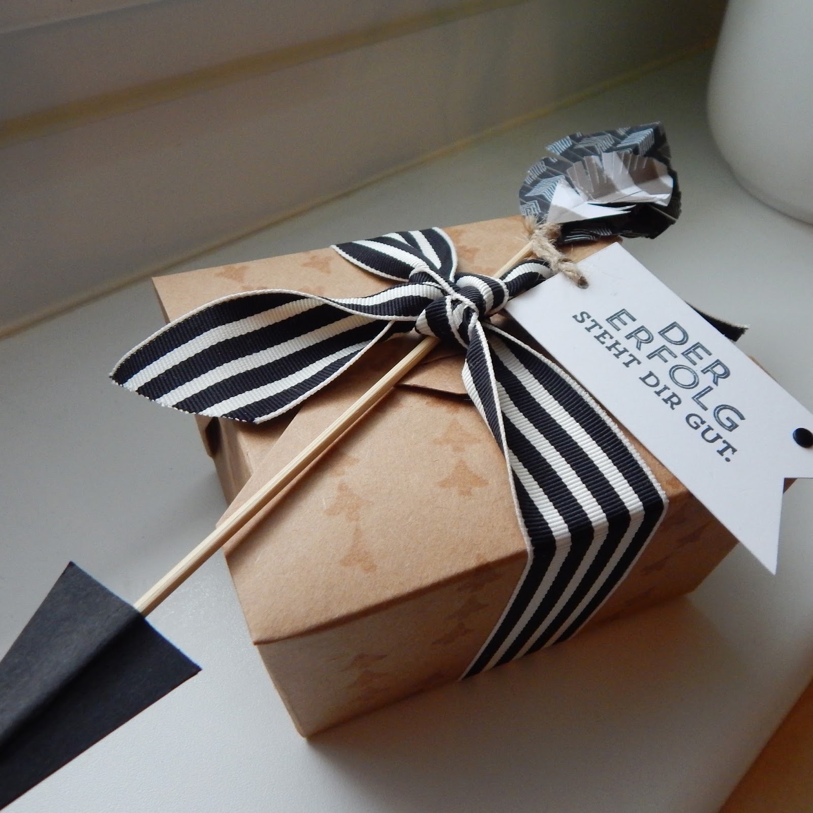 Hier kam mir als Erstes die Idee mit den Pfeilen.Die wollte ich unbedingt einbauen. Und dann dachte ich mir, mach mal etwas für jemanden, der eine Prüfung bestanden hat, oder befördert wurde. Geeignet sowohl für Weiblein, als auch Männlein.