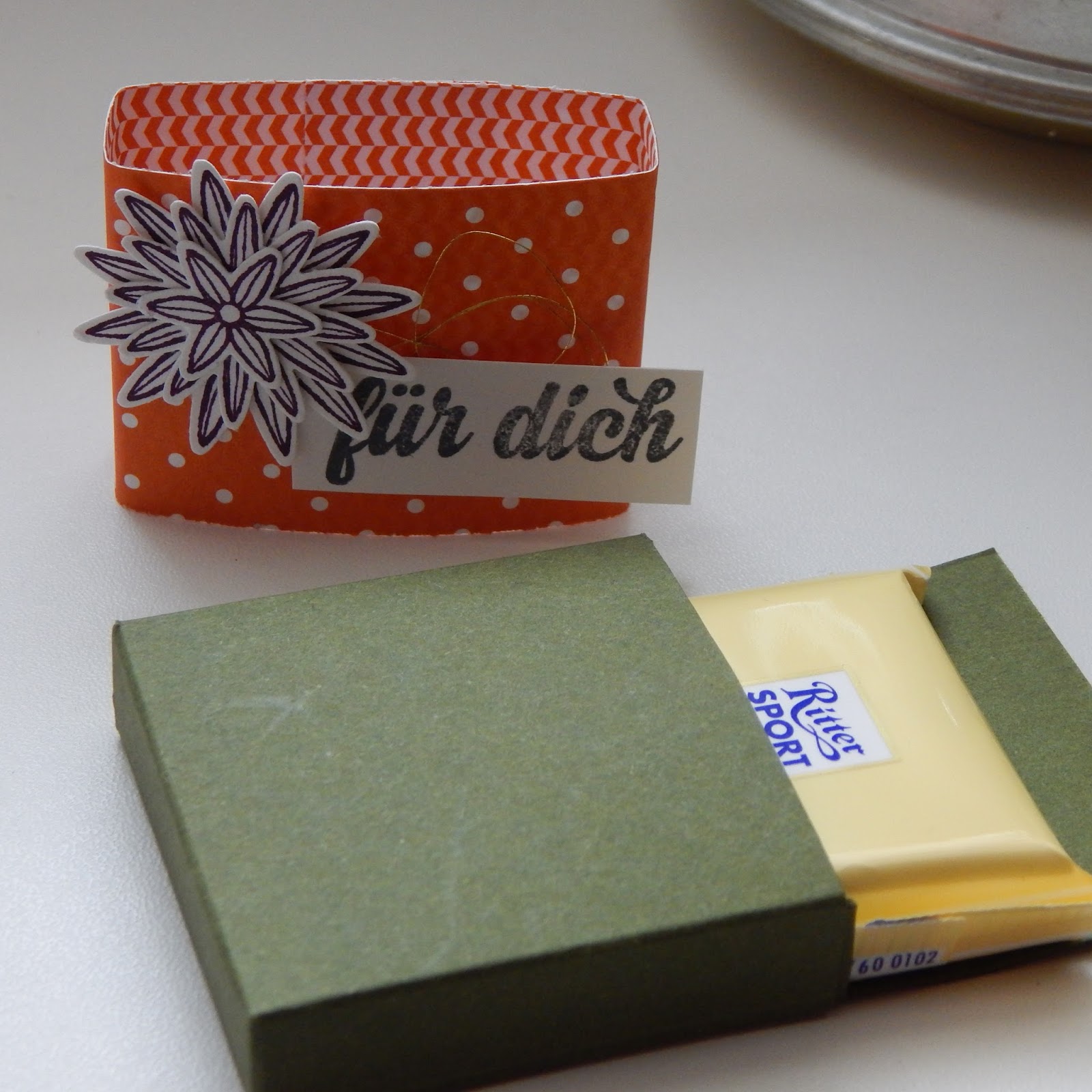 Heute zeige ich dir kleine Verpackungen für die Minirittersportschoko. Ein kleines Goodie.