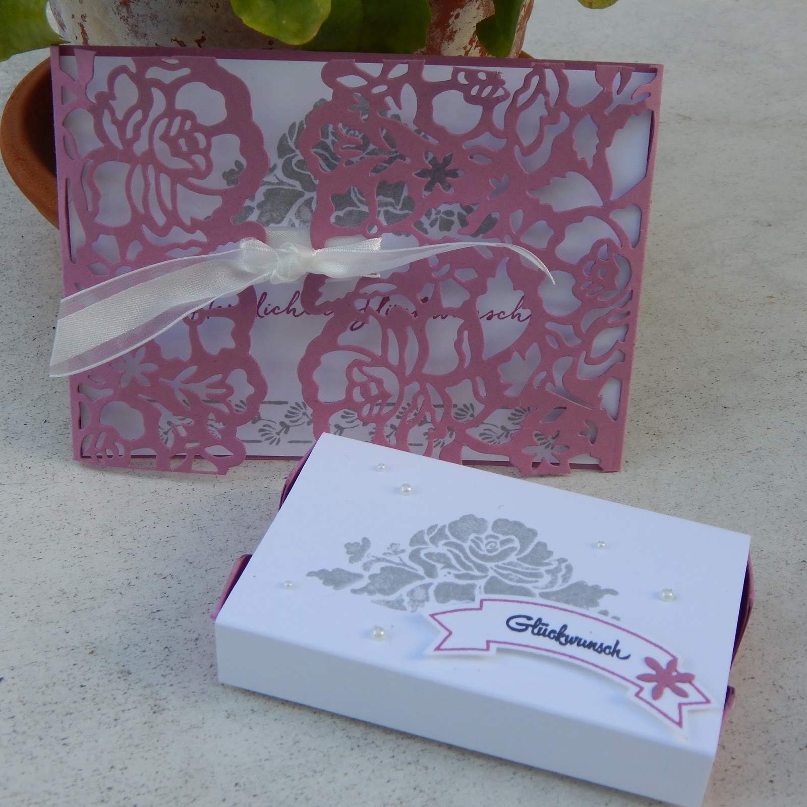 Und ganz klar habe ich mit ihr und ihren Gästen dies wunderschöne Klappkarte, die du bestimmt schon oft im Internet bewundert hast, gewerkelt. Dazu gab es eine passende Matchbox.