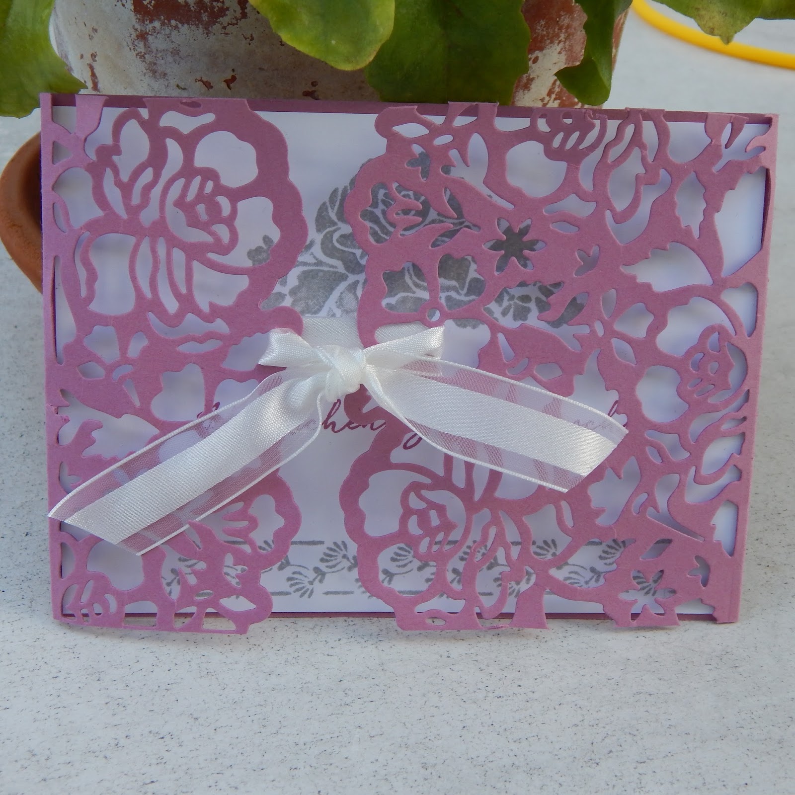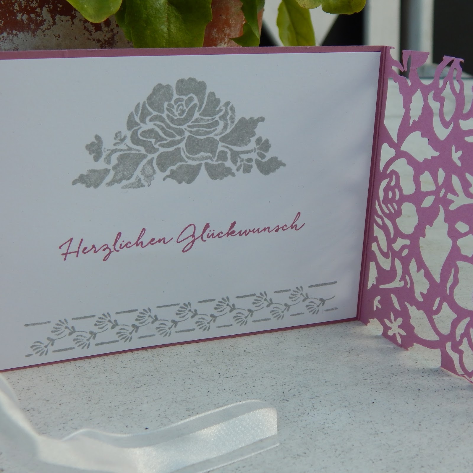 Mit den Farben habe ich mit den Farben Zarte Pflaume und Anthrazit genau den Geschmack meiner Gastgeberin getroffen. Und die Thinlitsstanze hat alle begeistert!
