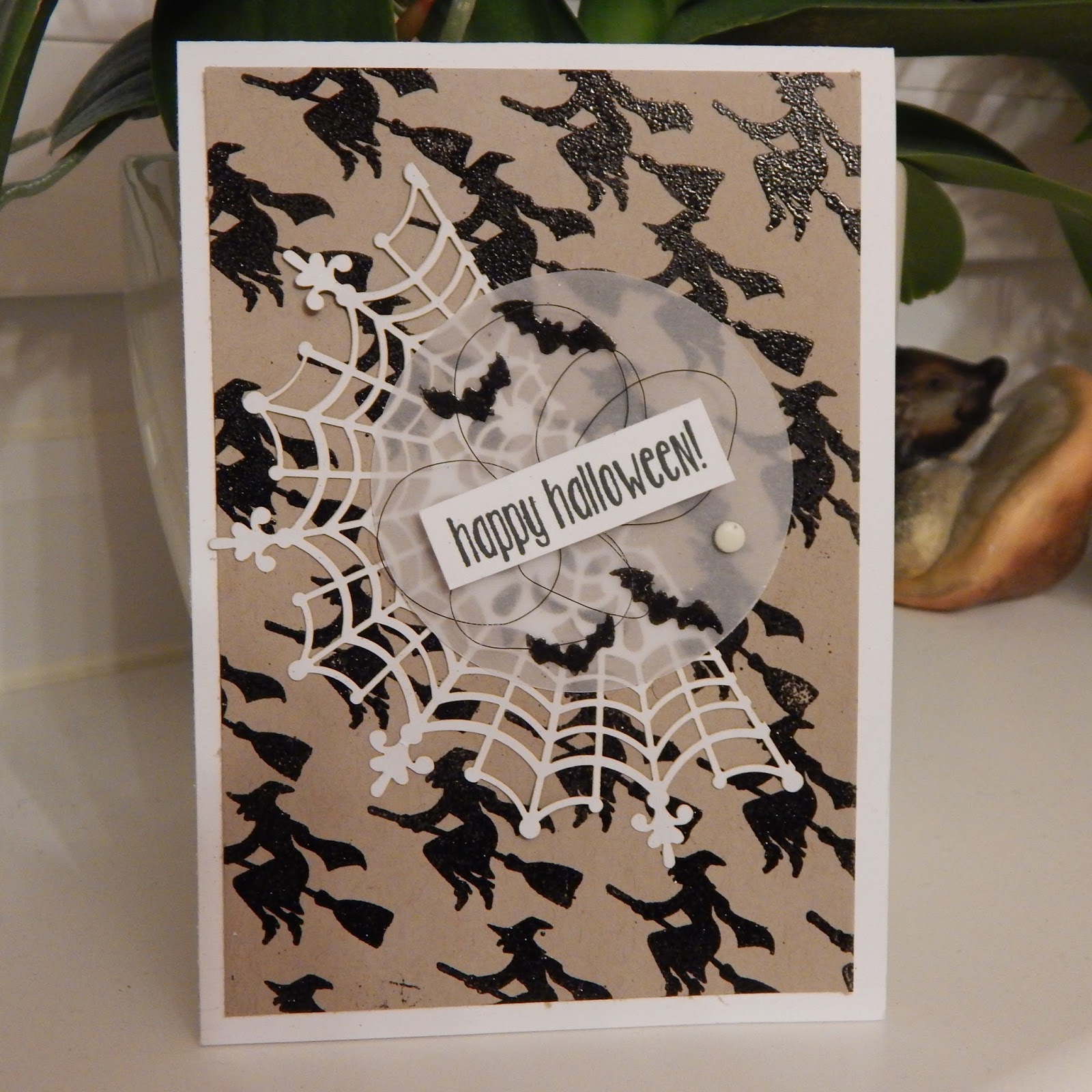 Als Kontrast diese Karte in Schwarz. Als Motiv fand ich die Hexe ganz passend dazu.