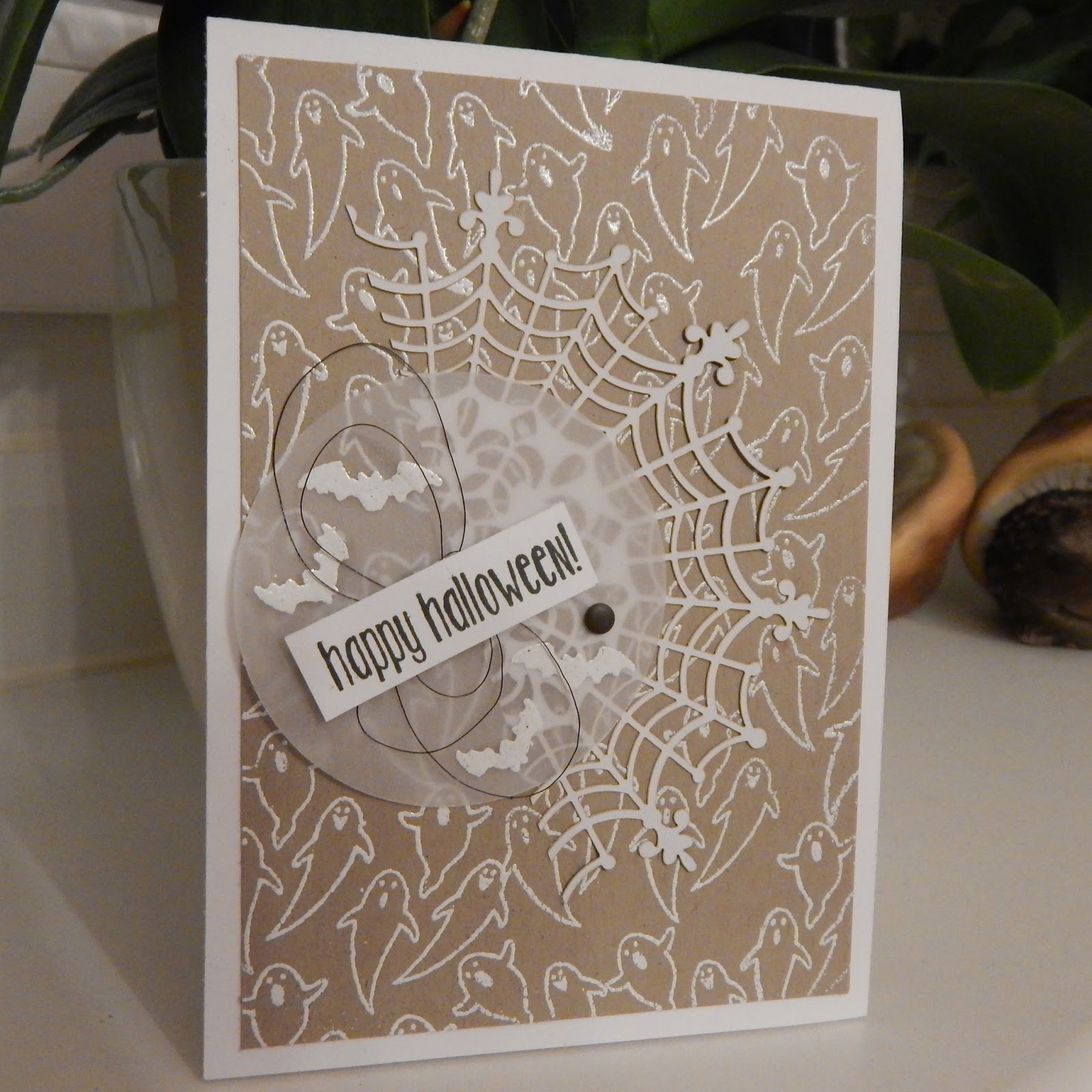 Sind diese Geister nicht niedlich? Und Halloween in Weiß ist doch auch mal etwas anderes! Die Hintergründe, bei beiden Karten, sind komplett embosst.