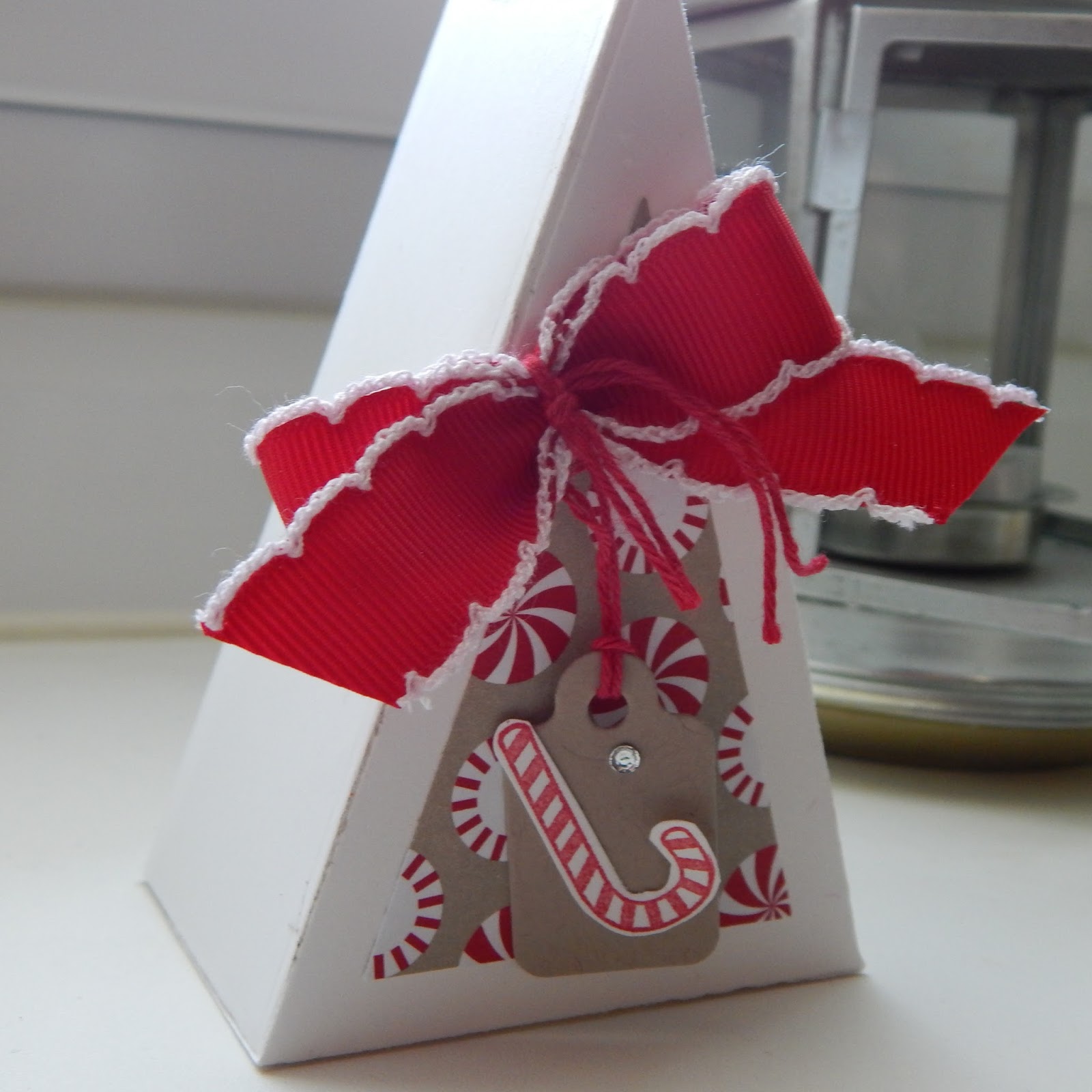 Die Verpackung sollte a einen Tannenbaum erinnern, deswegen hab ich das Thinlits Tortenstück gewählt. Einfach umdrehen und schon hast du einen Tannenbaum. Und es passt einiges rein!