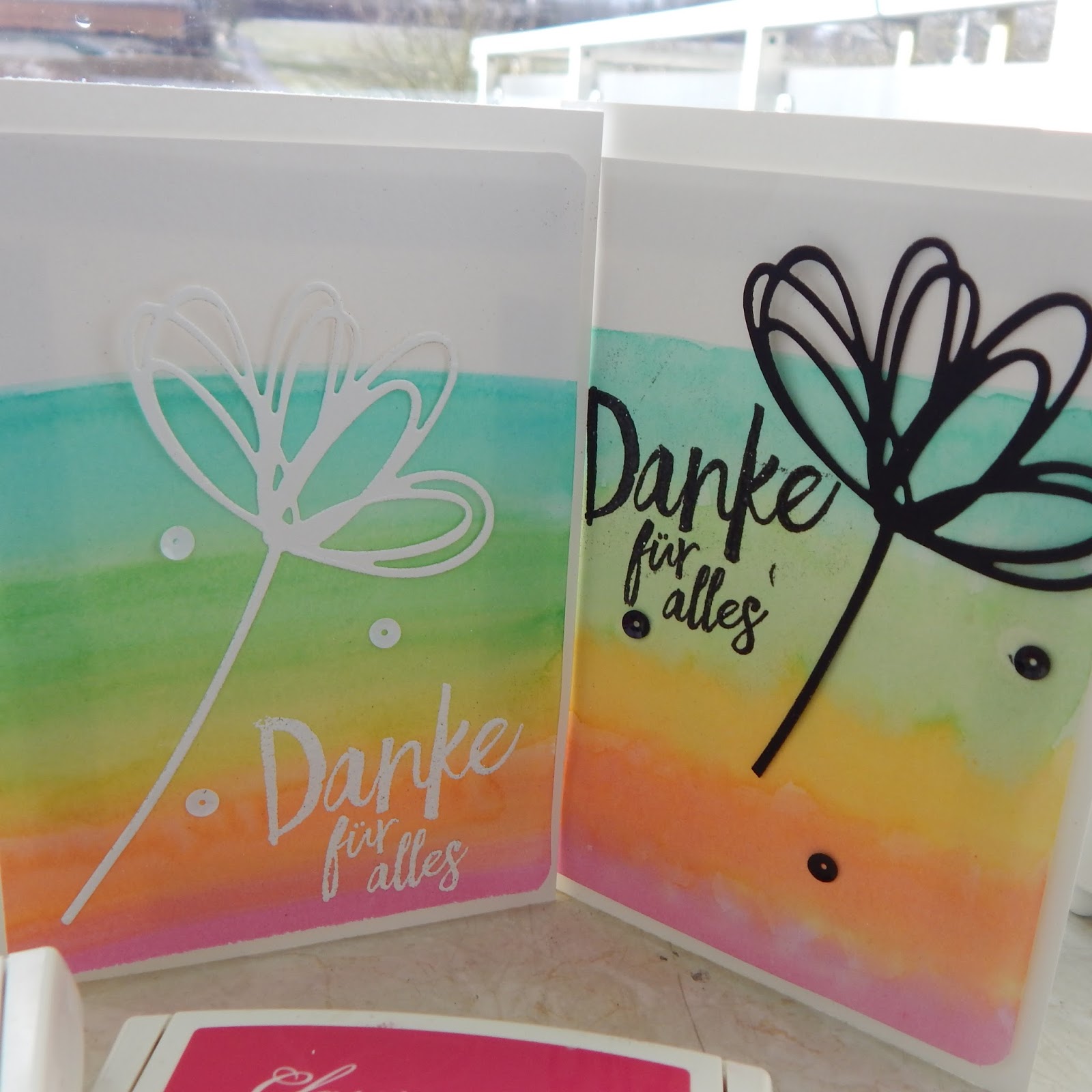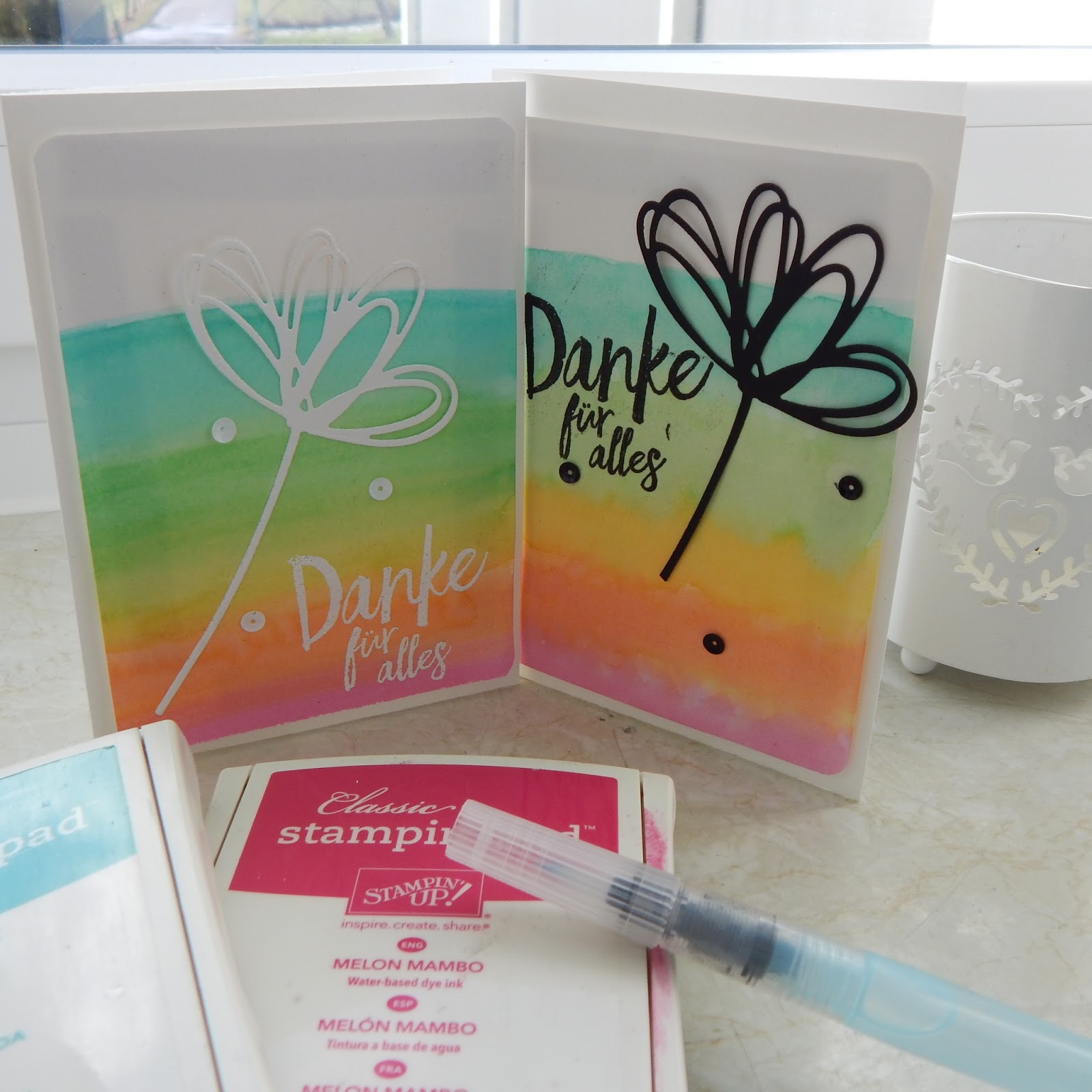 Ich möchte dir heute zwei Karten zeigen, die in einer einfachen Aquarelltechnik gestaltet sind.