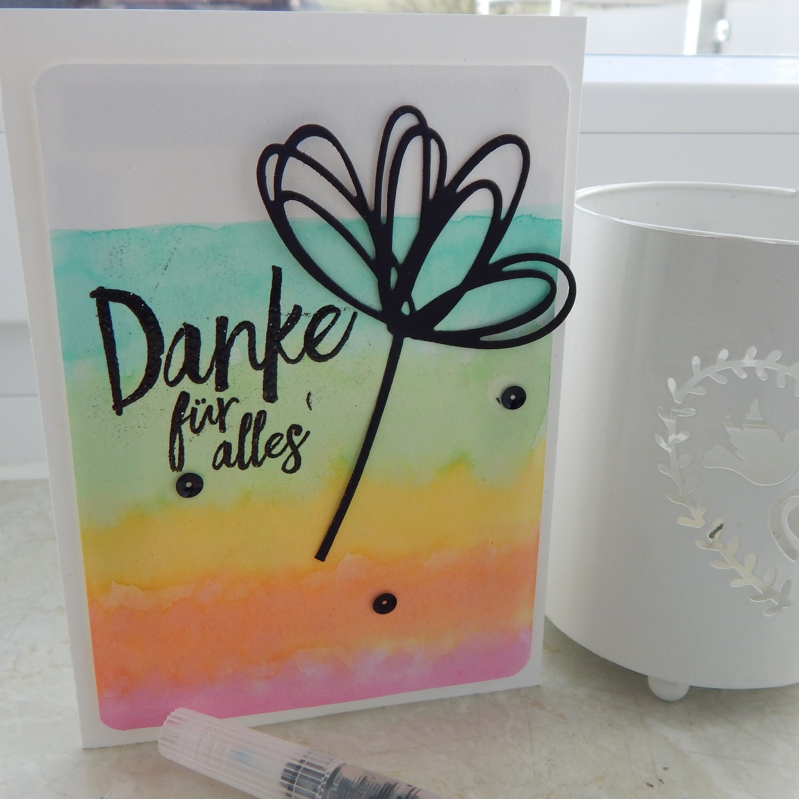 Den Dankesgruß, aus dem Stempelset “Danke für alles”, habe ich einmal in Weiß und in Schwarz embosst.