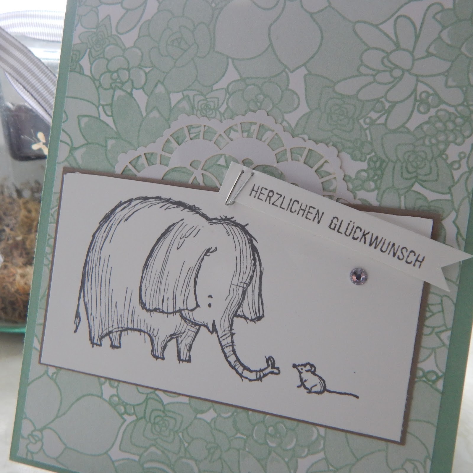 Das Designpapier findest du im Frühjahr/Sommerkatalog und heißt Sukkulentengarten. Die Farben Minzmakrone, Flüsterweiß, Taupe und Zarte Pflaume.