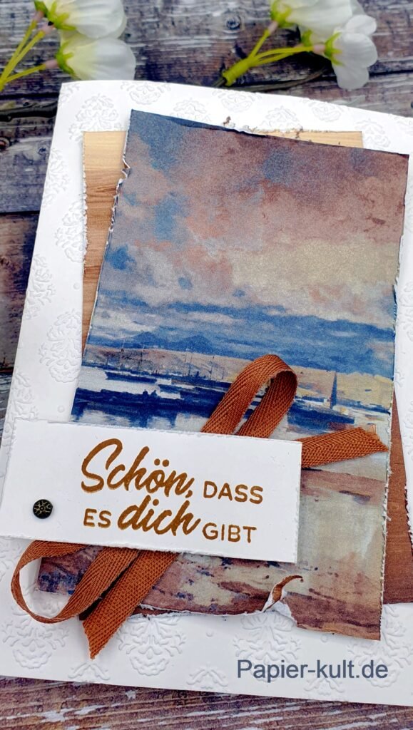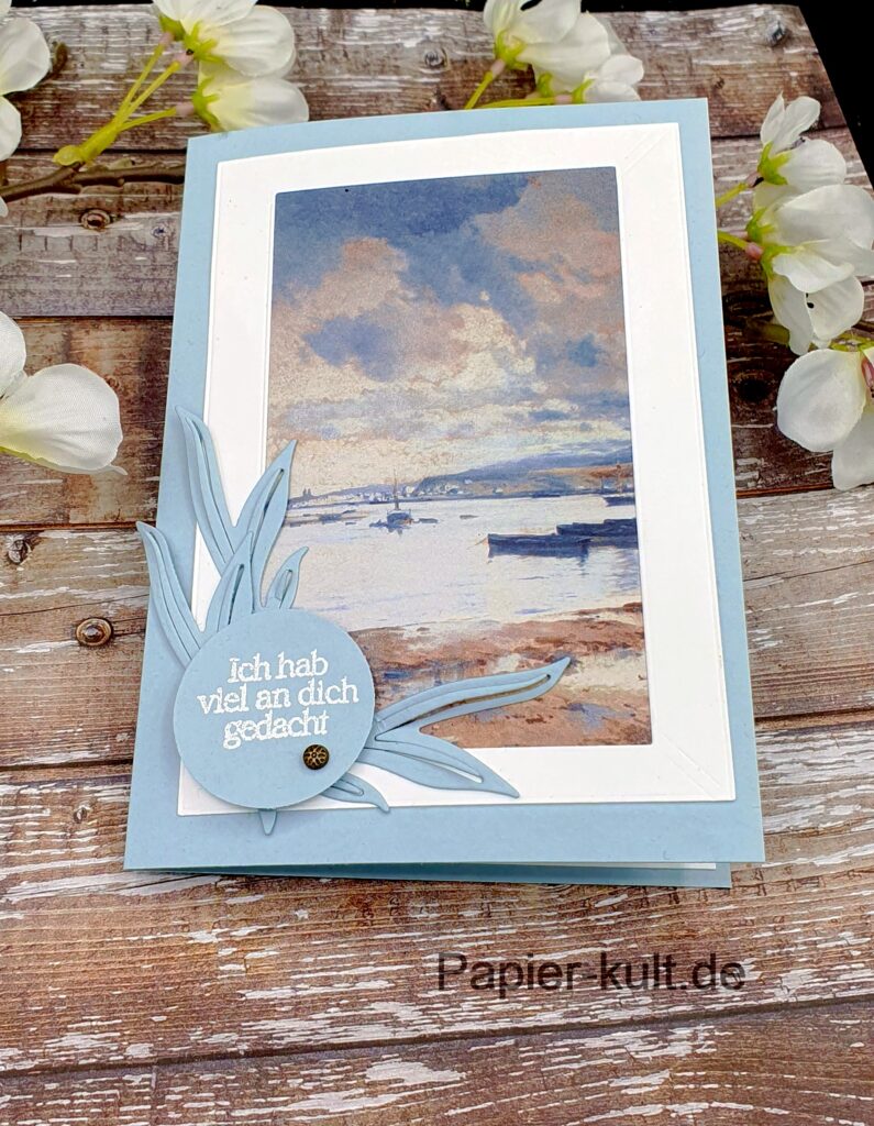 Ich habe noch zwei weitere Kartenideen für Euch mit der Produktreihe Geschmackvolle Galerie. Einfach das wunderschöne Designpapier rahmen und verzieren mit Stanzteilen, Verzierelementen und Spruch. Schnell hat Frau schöne Karten fertig. Ohne großen Aufwand!
