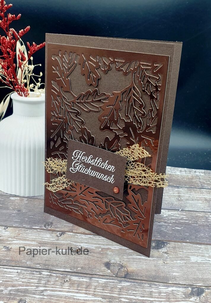 Ich habe mich für die Herbstproduktreihe “Herbstszenen” entschieden, weil es so herrlich nostalgisch ist. Oder Vintage wie man heute sagt. Da ich mich nicht entscheiden konnte, habe ich euch zwei Karten gestaltet. So kommen alle Produkte zum Einsatz: Stempel, Stanzen, Designpapier und Zierelemente.