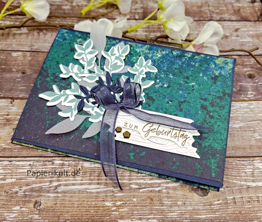 Ich habe dazu eine Klappkarte mit Fach gewerkelt. Mit der Produktreihe “Liebe zur Natur”. Ich liebe sie! Tolle Farben!