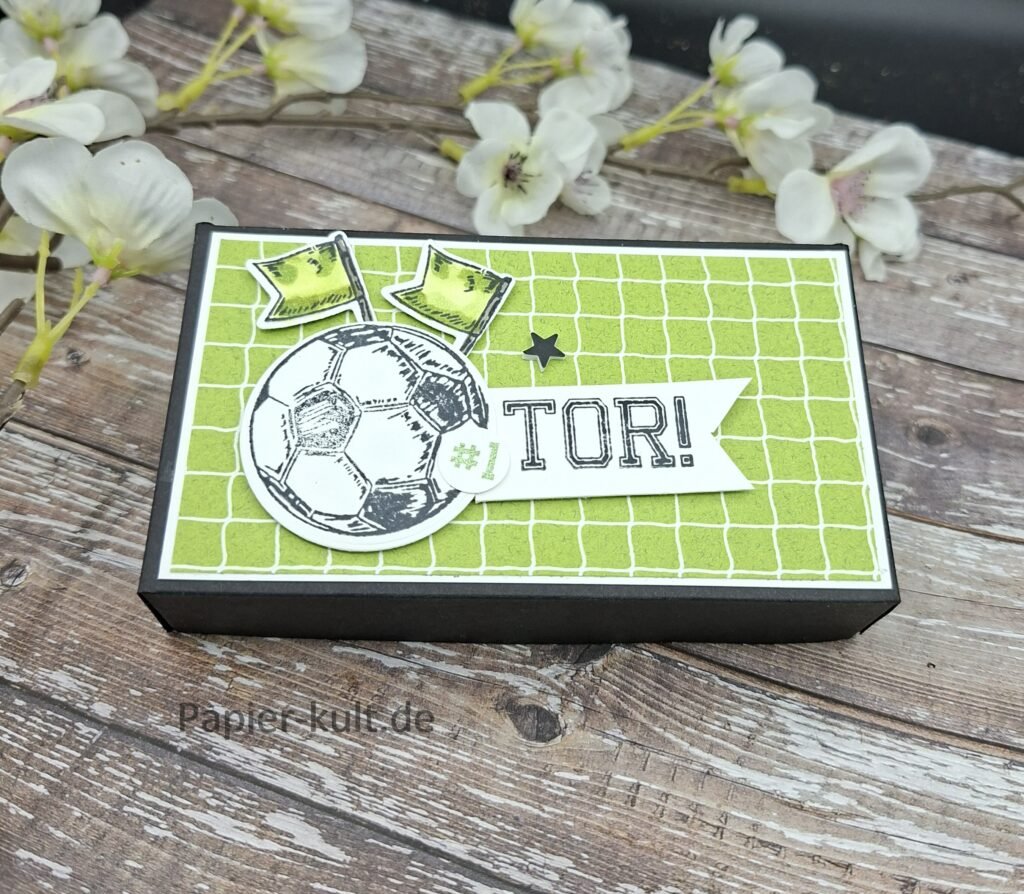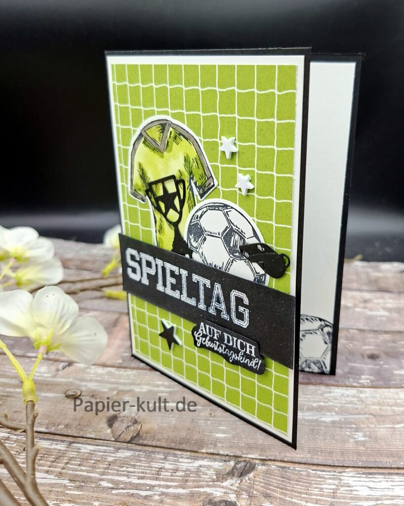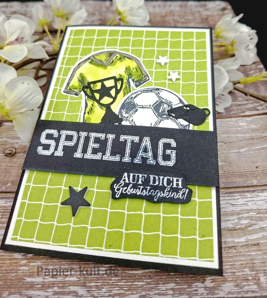 Ich hab mir die Produktreihe “Voll ins Tor!” eigentlich angeschafft, weil mein Sohn Fußballer ist und ich Layouts damit erstellen wollte. Aber ich finde es passt voll ins Thema. Denn wieviele Männer sind Fußballfans?!
