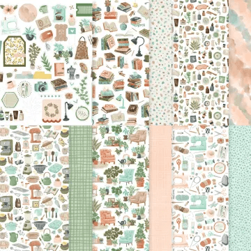 Besonders das Designpapier hat es mir angetan. Es zeigt Motive zum Thema Bücher, Garten, Kochen, Deko und Kosmetik. Dazu gibt es passende Stanzteile..
